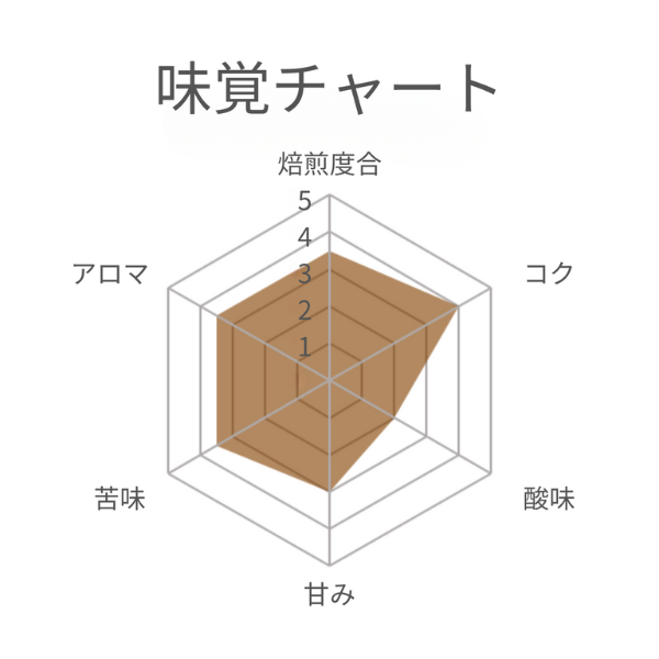 しっかりとしたコクと華やかなコーヒー感があります。コクや重厚さを求める方や、食後の1杯にもどうぞ。